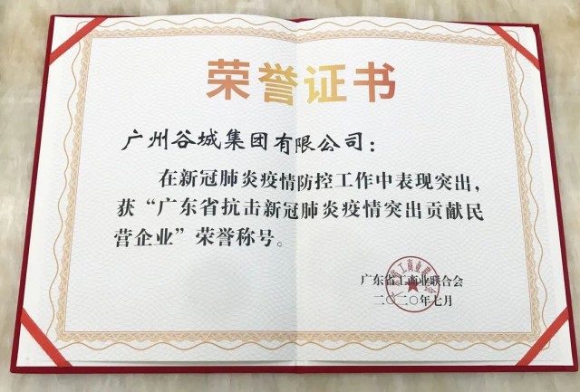 谷城集團榮獲“廣東省抗擊新冠肺炎疫情突出貢獻民營企業(yè)”榮譽稱號