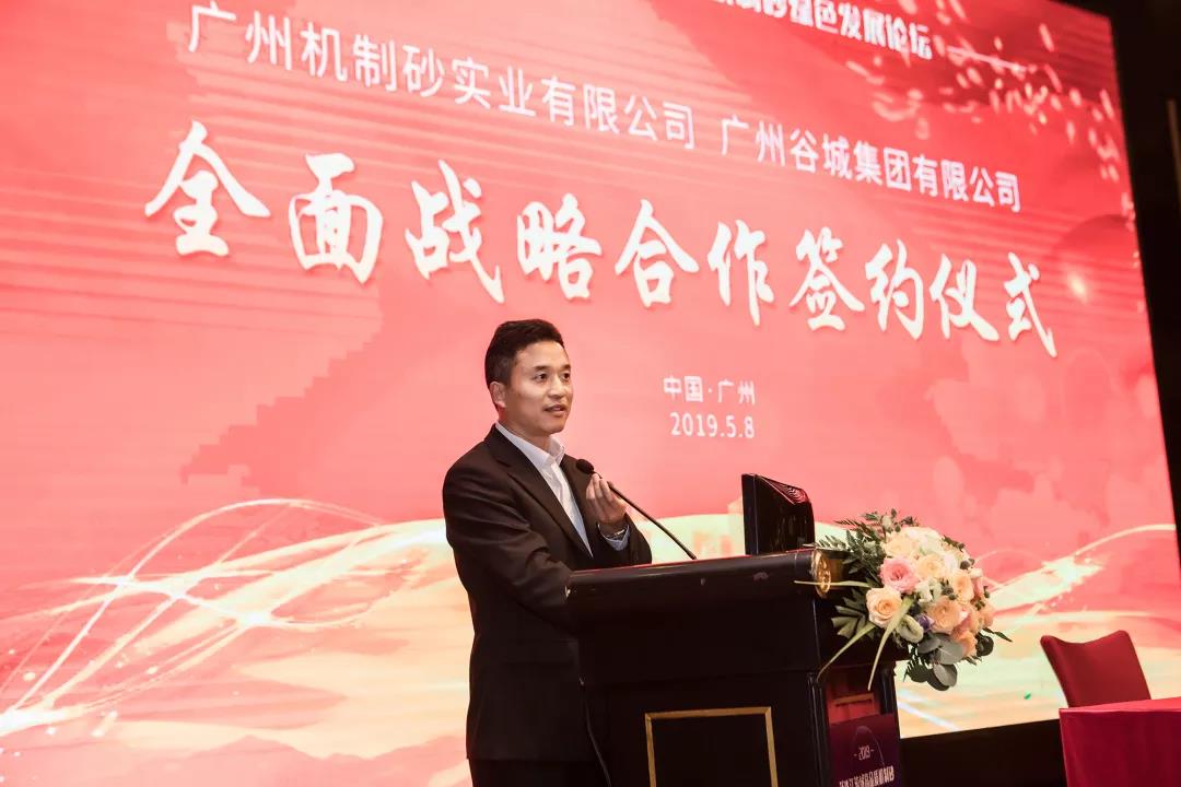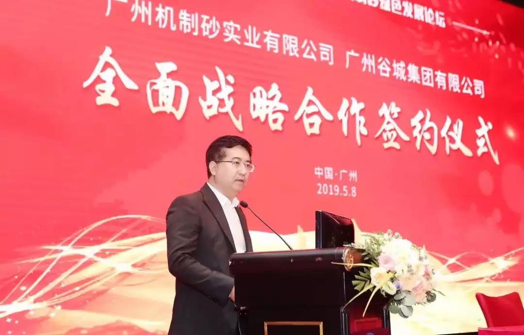 廣州機制砂實業(yè)有限公司董事長王湘軍發(fā)表講話,公司致力于推動地區(qū)用砂市場結(jié)構(gòu)性調(diào)整,確保逐步輻射大灣區(qū)機制砂市場,引領(lǐng)廣東機制砂行業(yè)的健康發(fā)展。本次與谷城集團建立戰(zhàn)略合作伙伴關(guān)系,將共同助力廣州乃至粵港澳地區(qū)的跨越式發(fā)展。