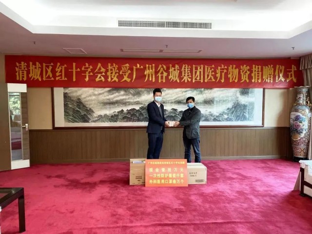 谷城集團(tuán)向清遠(yuǎn)市清新區(qū)人民政府捐贈(zèng)現(xiàn)金十萬元、一批防疫口罩、防護(hù)服、專門用于新型冠狀病毒肺炎防治工作。