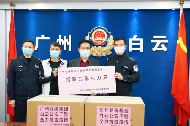 谷城集團(tuán)攜手東升慈善基金會(huì)向廣州市公安局白云區(qū)分局首批捐贈(zèng)防疫口罩20000個(gè),專門用于新型冠狀病毒肺炎防治工作。