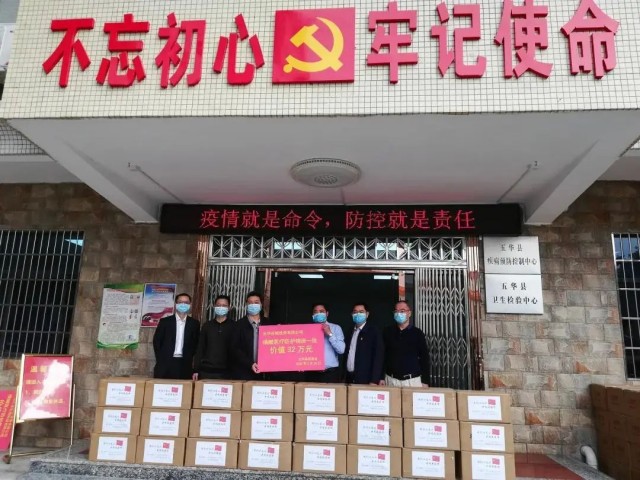 五華谷城向五華縣疾病預(yù)防控制中心捐贈(zèng)一批價(jià)值32萬元的醫(yī)療物資(50000個(gè)口罩、400副護(hù)目鏡、495套隔離衣)。