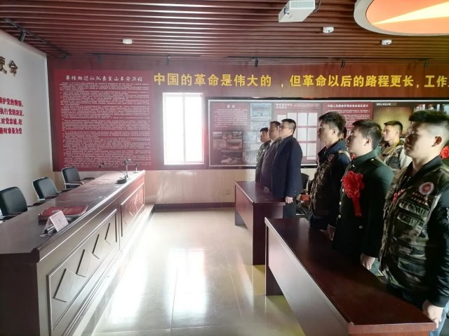 走進(jìn)老區(qū)榮譽(yù)室,四處都懸掛革命烈士光輝事跡的介紹牌,當(dāng)中展現(xiàn)出一段段振奮人心的故事,仿佛歷史的鐘聲在耳畔響起,在莊嚴(yán)的氛圍中,所有退役軍人起立齊唱中國人民解放軍軍歌。