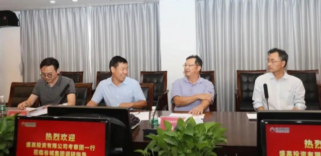 2020年8月26日,盛高投資有限公司總裁駱蔚峰、副總裁樓信逵,盛高投資有限公司產(chǎn)融園區(qū)事業(yè)中心產(chǎn)融投資部總經(jīng)理李斌、王俗儉,副總監(jiān)吳樂平一行蒞臨谷城集團(tuán)調(diào)研。