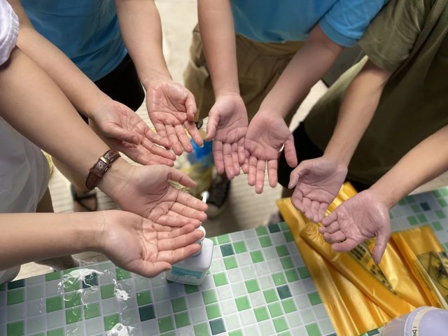 雙手握成了橋梁,