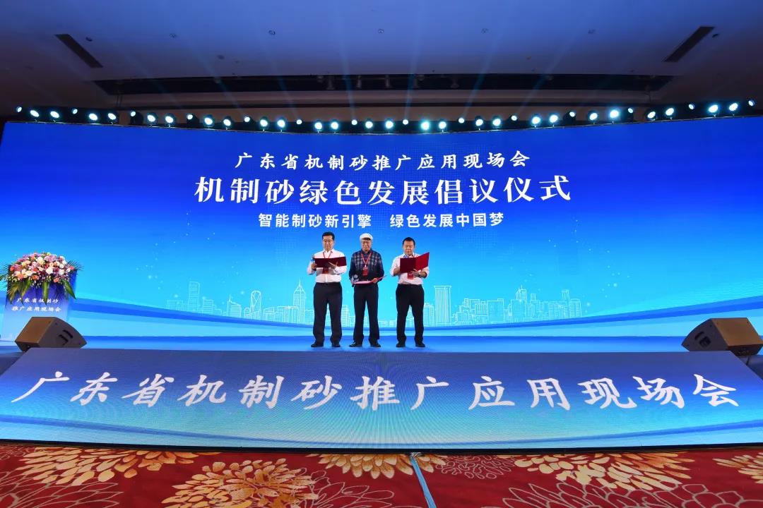 廣東省預(yù)拌混凝土行業(yè)協(xié)會(huì)執(zhí)行會(huì)長(zhǎng)許小安、廣東省建筑材料行業(yè)協(xié)會(huì)砂石分會(huì)會(huì)長(zhǎng)賴志光、廣東省建設(shè)工程綠色與裝配式發(fā)展協(xié)會(huì)機(jī)制砂專業(yè)委員理事長(zhǎng)肖大志現(xiàn)場(chǎng)發(fā)起機(jī)制砂綠色發(fā)展倡議。三大協(xié)會(huì)將承擔(dān)起機(jī)制砂行業(yè)發(fā)展的使命,適應(yīng)經(jīng)濟(jì)社會(huì)發(fā)展的趨勢(shì),履行社會(huì)責(zé)任,走綠色可持續(xù)發(fā)展道路。