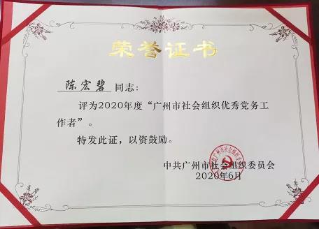 中共廣州市社會(huì)組織委員會(huì)通報(bào)表彰先進(jìn),中共嘉禾益民醫(yī)院黨支部書(shū)記陳宏碧同志被評(píng)為社會(huì)組織“優(yōu)秀黨務(wù)工作者”的稱(chēng)號(hào)。