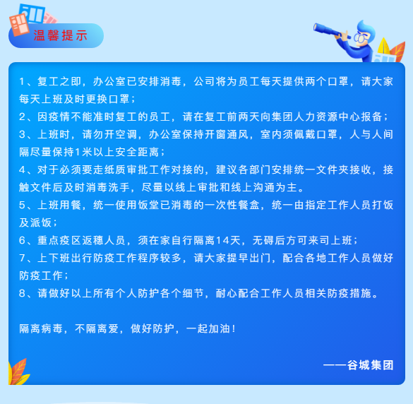 谷城集團(tuán)也做好了復(fù)工準(zhǔn)備