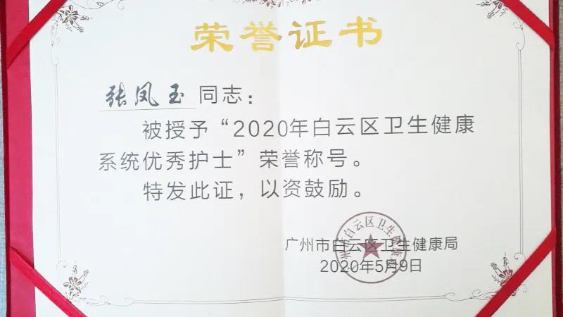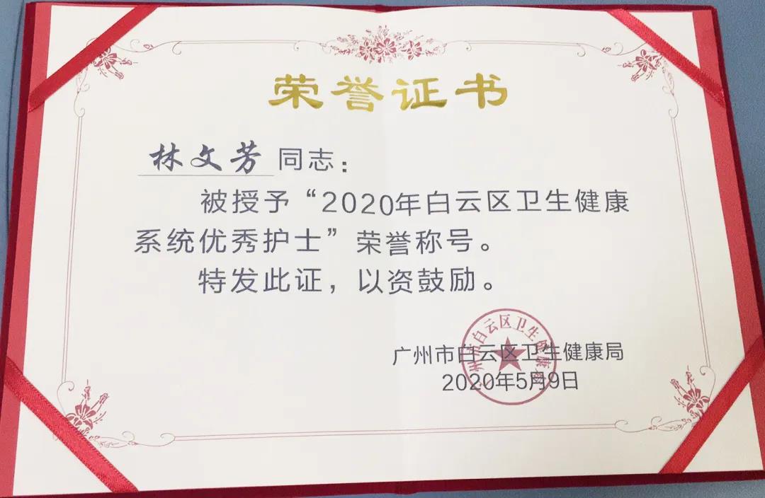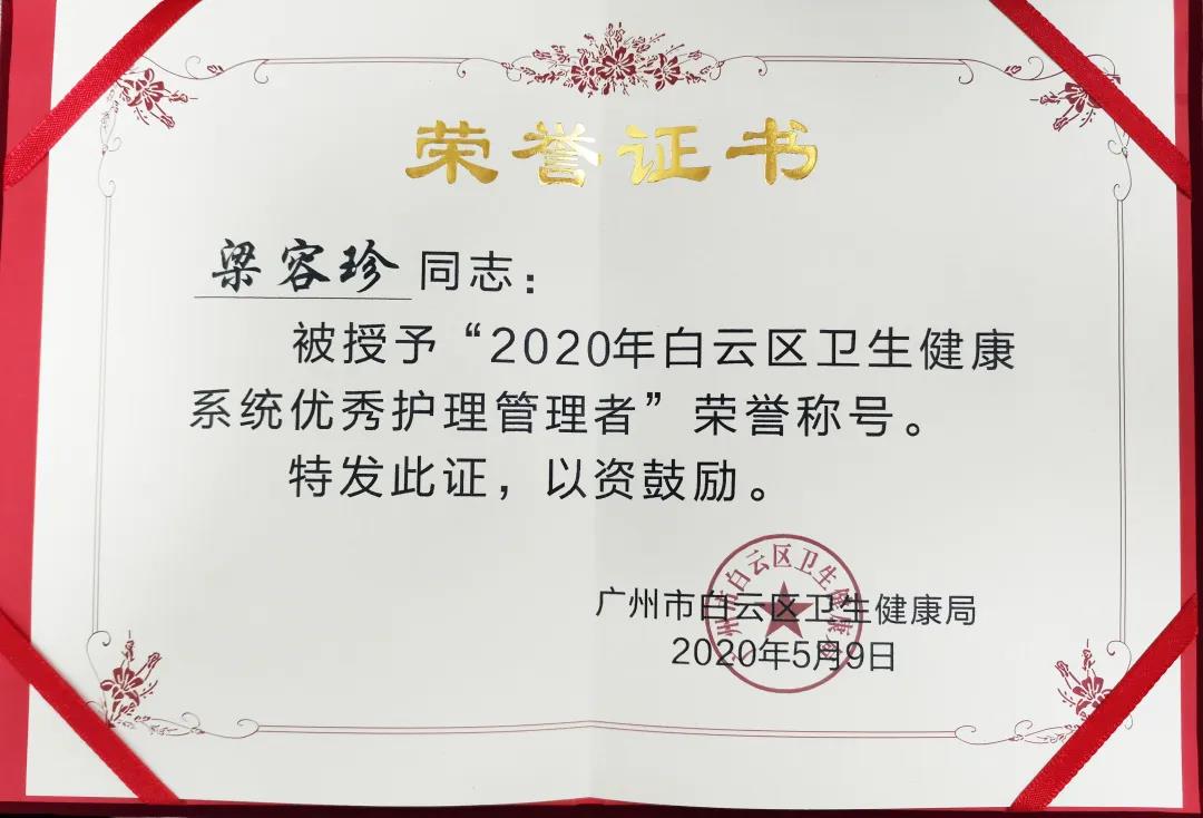 谷仁醫(yī)療永平街社區(qū)衛(wèi)生服務(wù)中心梁容珍主任被授予“2020年度白云區(qū)衛(wèi)生健康系統(tǒng)優(yōu)秀護理管理者”的稱號。
