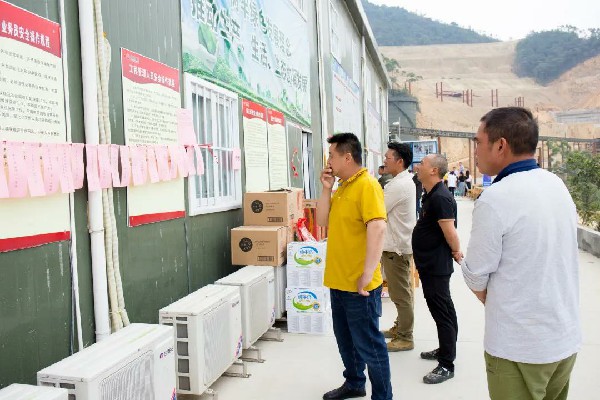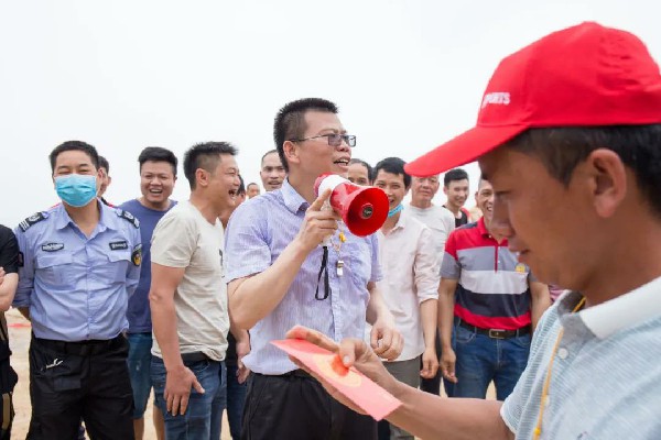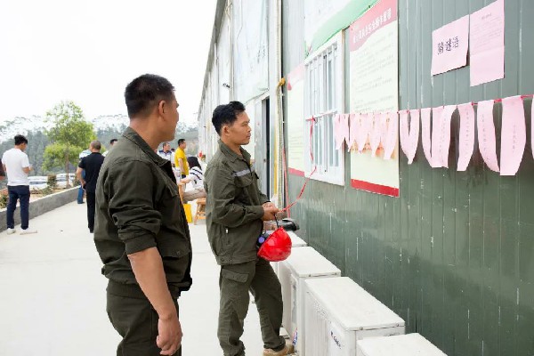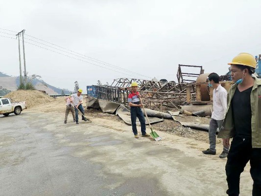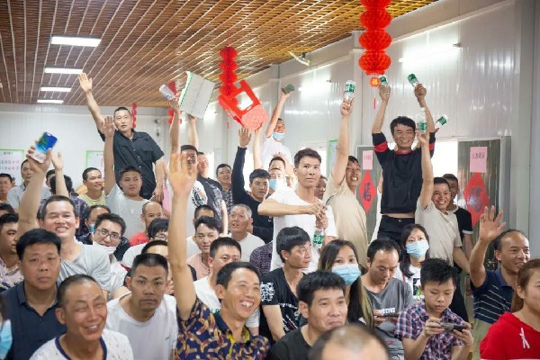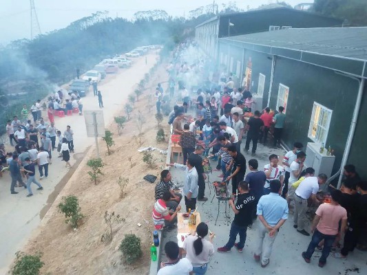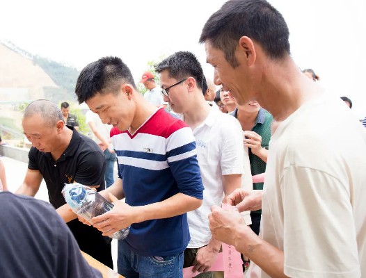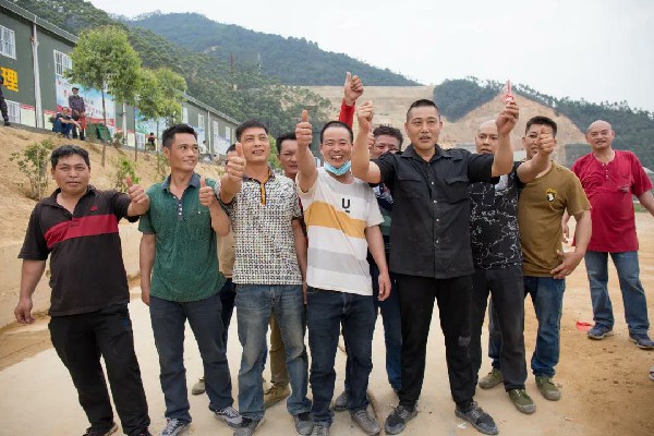 上午11:00分,全體員工進行全家福留影,公司領導與全體同事們排列在谷城礦業(yè)的標志性建筑–2號制砂樓主生產(chǎn)線前面,揮舞著手中的紅旗,歡呼著“綠水青山、谷城智造、勞動最光榮”的口號,留下非常具有人生意義的影像。