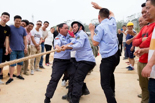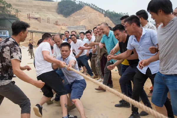 在吼聲震天的加油聲中,活動的重頭戲—拔河比賽開始了,拔河比賽不僅是比賽力量,更是一種體現(xiàn)團隊精神的活動;參賽的各支隊伍對陣時竭盡全力,輪換的時候又互相加油打氣,旁邊的觀眾更是“唯恐天下不亂”,加油聲一浪高過一浪,在經(jīng)過幾輪激烈較量后,終于決出勝負。