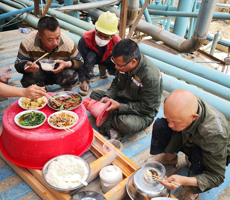 董事長和領(lǐng)導(dǎo)們?cè)谏a(chǎn)線上簡易用餐時(shí),還不忘討論工作